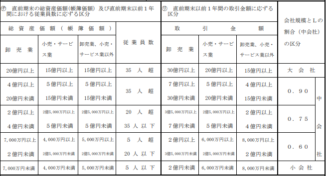 斟酌率:大会社=0.7 中会社=0.6 小会社=0.5