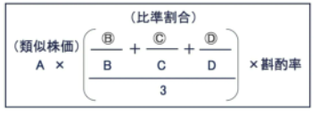 類似業種比準価額方式の算式は下記の通りです。